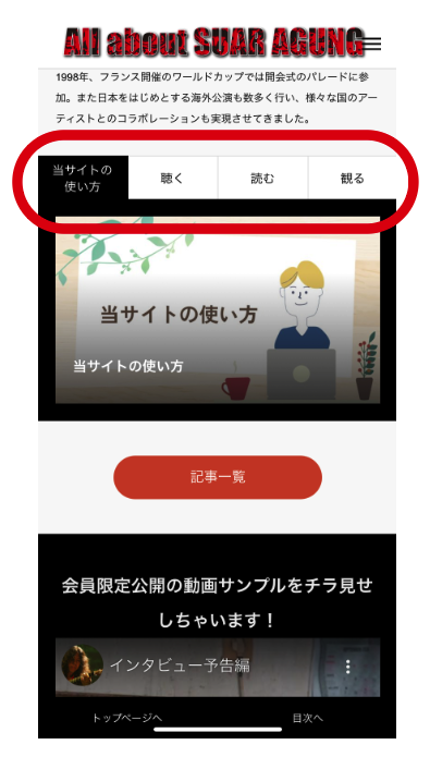トップページから行けるコンテンツ 以下の4つあります。